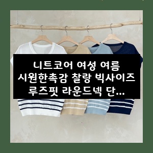 니트코어 여성 여름 시원한촉감 찰랑 빅사이즈 루즈핏 라운드넥 단가라 스트라이프 나시 민소매 니트 티셔츠