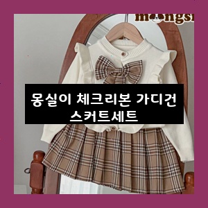 몽실이 체크리본 가디건 스커트세트